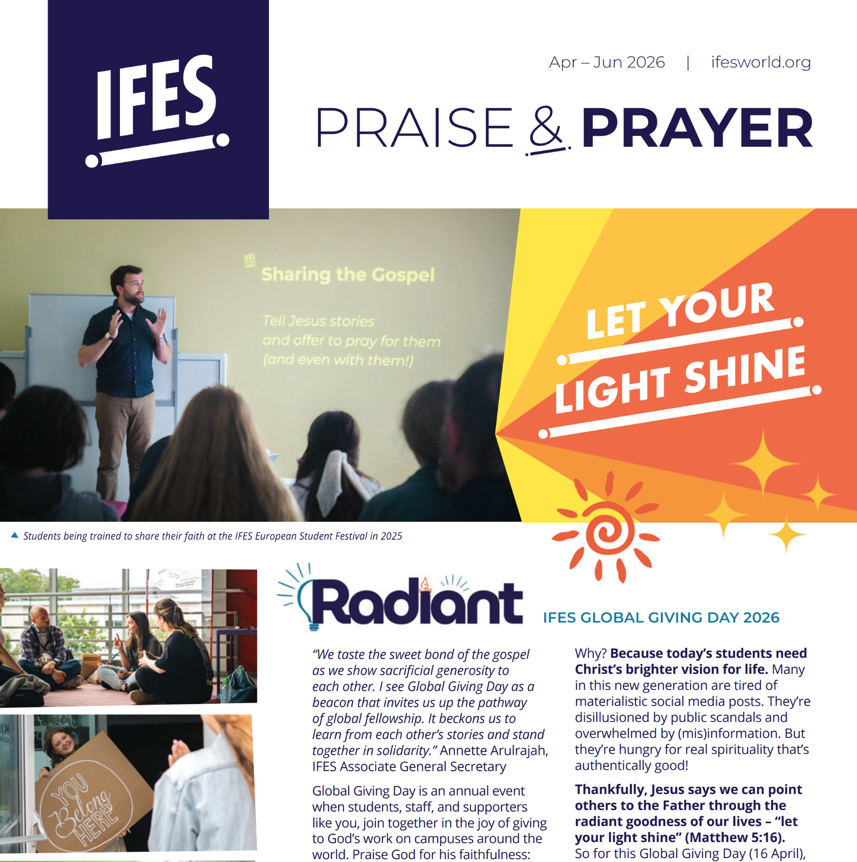 Every three months, receive news about IFES ministry and movements to help fuel your prayers. Download here or subscribe for email or post (US, UK, and Canada only).